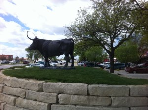 The historic Front Street, where famous lawmen like Bat Masterson, Wyatt Earp, and Bill Tilghman worked to tame the wildest town in the west, is now a parking lot. About two blocks away is the Boot Hill Museum and a rebuilt Front Street, which to me has the feel of an amusement park setting. The highway was widened, but the proposed hotel and pedestrian malls were never completed. An impressive sculpture of a longhorn now marks the historic location. As one area historian told me, where the famous Long Branch Saloon once stood is now the spot for that Honda Civic.